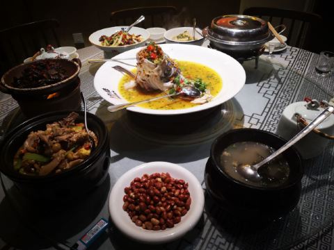 农家小炒肉,胡椒腐竹鲜猪肚,双色鱼头,擂辣椒皮蛋,开胃金针菇,干捞海皇粉丝,椒麻口水鸡,铁板蒜茸虾,小炒黄牛肉,鸡汤野生菌