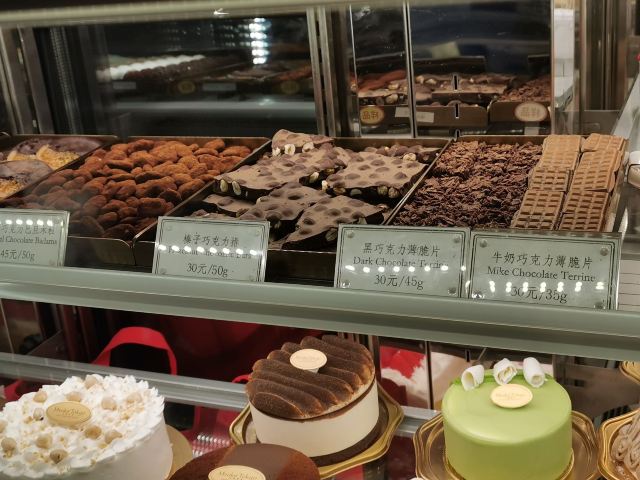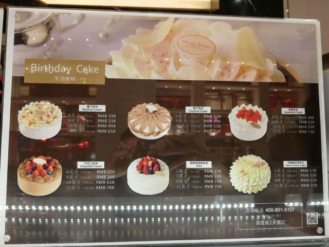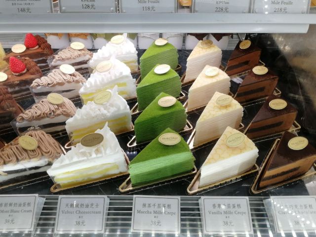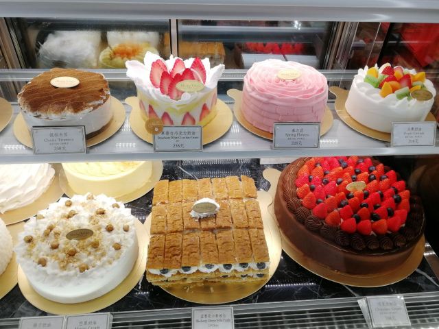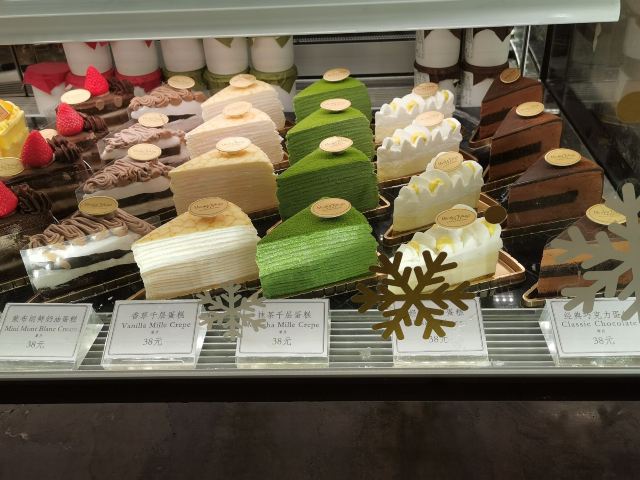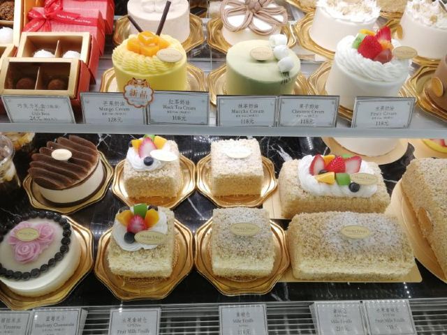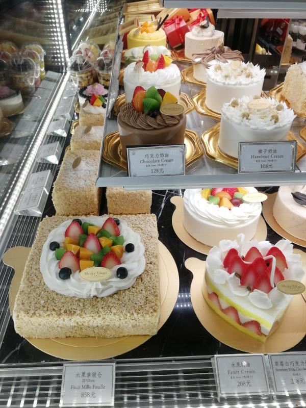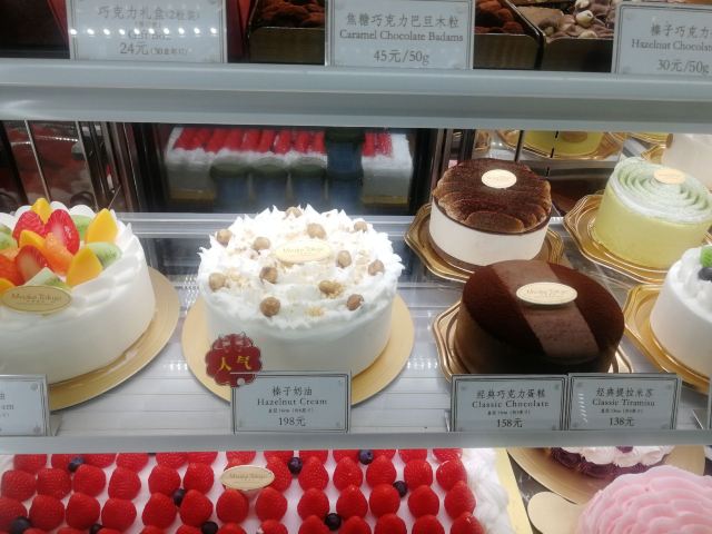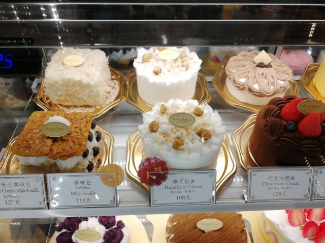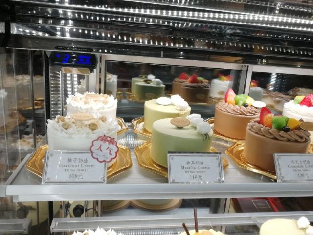 之前生日吃过这里的蛋糕,觉得不错,这次朋友生日,提前过来专门订蛋糕。这里的蛋糕价格稍微有点贵,但未吸引不少人来吃,证明味道是受欢迎的。四寸的蛋糕太小,只适合2-3人吃。订了6寸的榛子奶油蛋糕,订蛋糕需要提前2天预订。订要蛋糕原本想买个抹茶千层吃,谁知道店员说沽清了,原来橱柜展示的全部是样品,假的………做得还挺逼真的!