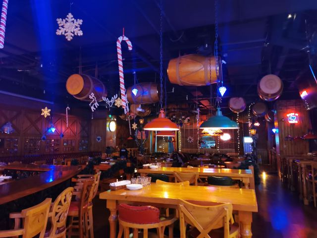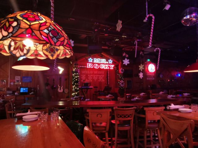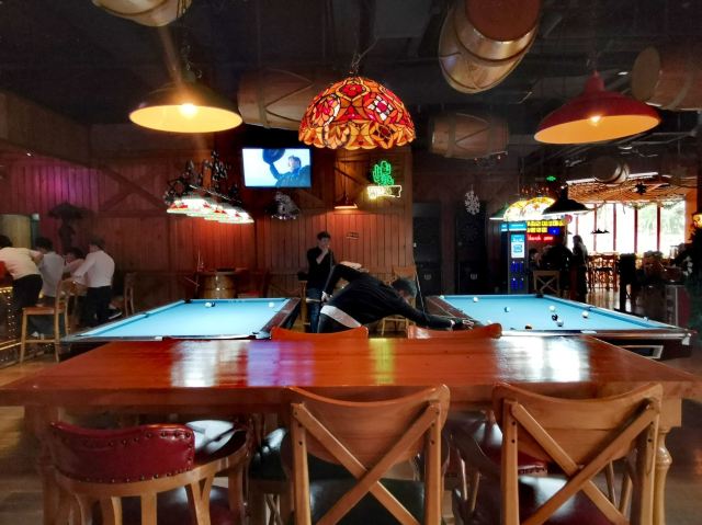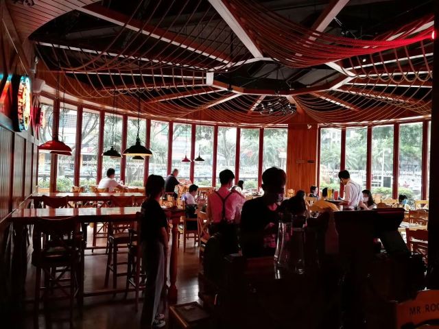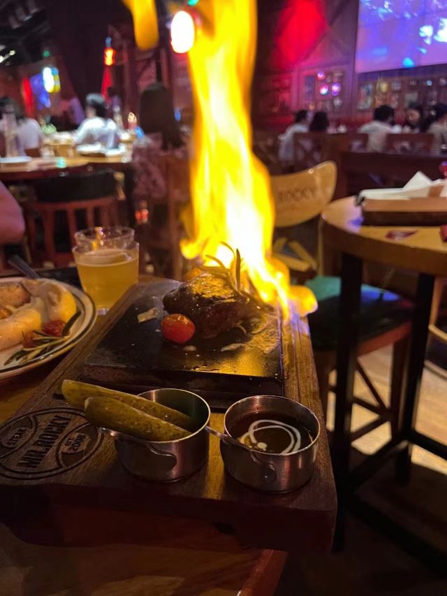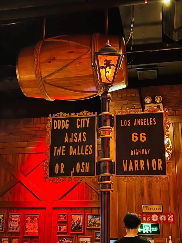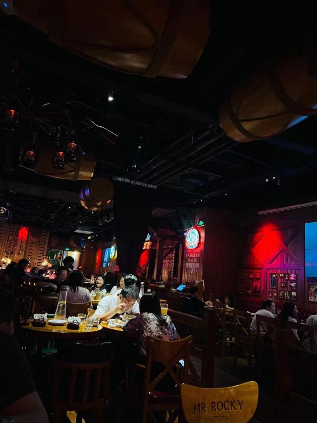 很典型的美式餐吧,装饰就很有美国西部牛仔的风情,还可以玩飞镖和桌球。晚上还有外国人表演,气氛非常嗨,这家分店的环境也不错。菜色以美式牛排和披萨为主,味道也不错。