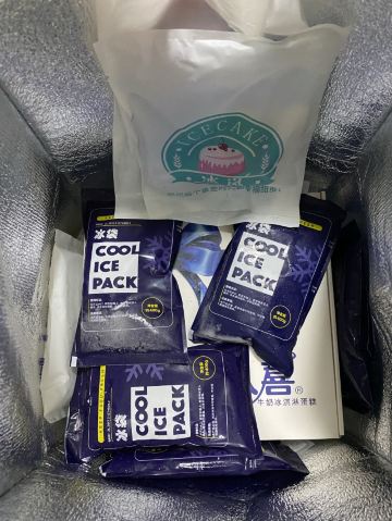 见到有八喜居然开了店,卖雪糕蛋糕,感觉挺新奇的,这个牌子的雪糕经常吃,觉得蛮不错的,刚好家里有人生日,就试试雪糕蛋糕吧。买了一份团购,是一个小四拼,提前打电话预约,加了客服微信,客服的服务态度不错。生日当天按照约定时间送来了蛋糕,蛋糕用了保冷袋装着,密封性好,里面还放了很多冰袋,打开的时候冰袋还是硬硬的,没有溶化。 一打开盒子的时候,蛋糕完好无损,很漂亮,但是一定要马上吃,如果不能马上吃,必需要放冰箱,最好是速冻呢。蛋糕打开以后,由于最近天气热,很快就开始化了,牛奶味很香。我吃到的是有花生粒的那块,香浓牛奶味的雪糕配上花生粒,口感不错,还没有尝过雪糕蛋糕的不妨可以试一下。