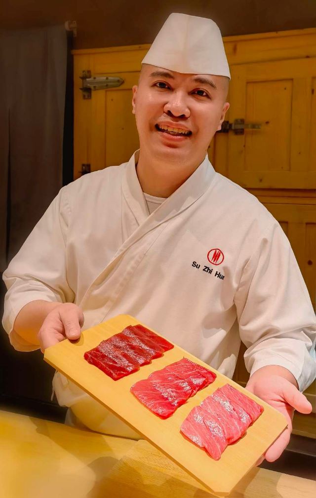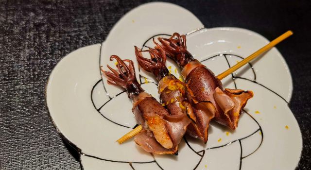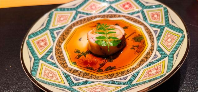 马粪海胆寿司,金枪鱼大腩寿司,富山湾荧光鱿鱼,油煮八爪鱼,蒸鲍鱼配鲍鱼肝酱,天然吞拿鱼,鲭鱼矶边卷,星鳗寿司,古酒渍牡丹虾,烧富山荧光鱿鱼,紫苏寿司卷,烧北极贝,日本水云莼菜醋,日本生蚝,静冈蜜瓜,酒糟雪糕,玉子烧