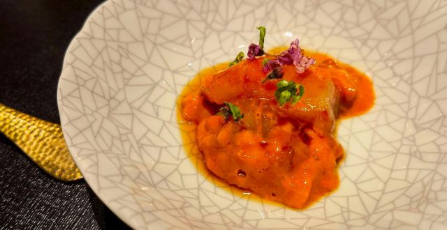 饭醉分子闫涛位于华侨新村的这家“旨匠”已经算是元老级的高端日料了,没有珠江新城那么喧嚣,坐落于隐秘的橘子水晶酒店,突然想起这里之前不正是那个大名鼎鼎的枕木酒吧吗?当年名震全国的木子美老师就是在这里辗转红尘,写出了《遗情书》。 红尘转头皆是空,如今的旨匠没有新贵的那些风云际会,反而有几分山中古寺的寂寥。餐具也不像时尚新人类那般奢靡华贵,反而显得有些朴实,当然太朴实了也存在一个问题,比如说葡萄酒的侍酒服务。 在后浪快速迭代的当下,前浪也得竭尽所能保持竞争力,人均一千八的价格相对优惠当然是不二法门,但除了基本盘扎实之外,也得有点推陈出新的东西,海胆捣酱拌牡丹虾算是小改进,直接烤日本带鱼奉上也是不多见的口味。