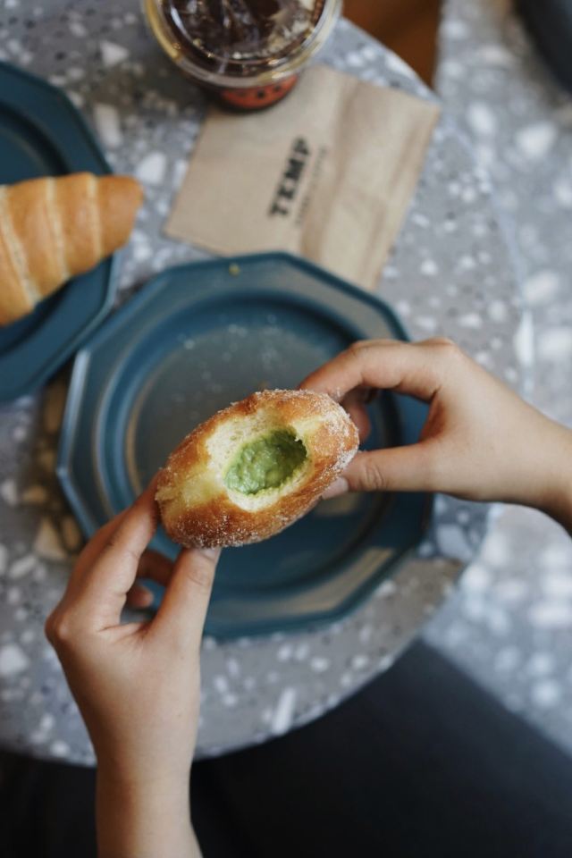 TEMP BAKERY&COFFEE心中广州面包 咖啡店之光 不论是硬欧还是起酥,组织方面近乎满分 开心果多拿滋,一口两眼放光 蓬松柔软 却又充满Q劲 回弹力仿佛会呼吸,这样的油炸面团太过惊艳!(一定要堂食) 走之前还扛了一堆回上海 蜂蜜芝麻法棍韧劲和嚼后蜂蜜甜感都极其美妙! 稍有不足之处在于面包的馅 开心果和杏仁的味道都有一些轻飘飘 大概是为了降低甜度考虑 但是瑕不掩瑜