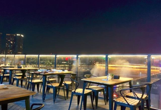 从阳台上看下去的风景确实不错无奈也就只能拍一张照片而已 「风昧墨鱼仔」或许是我不会欣堂我感觉和潮汕的墨鱼仔真的差不多昧道蘸的酱油和芥末都一个昧 「芝士南瓜浓汤配蛤州」这个还可以 「西西里风昧烤红鱼柳」没吃出什么感觉来 「帕尔玛风昧火腿薄片配蜜瓜」其实还可以我以为少组遏是主角结果蜜瓜才是主角火M薄一层在蜜瓜上吃了第一个下去感觉很迷吃了后几个好像找到感觉了还可以 「亚德里亚海黄汤」有一说一真的腥 「火焰低温慢烤牛肩脚肉」就一般 环境环境不错但是这附近大家都在打环境牌所以江景也不足以作为竟争的优势了而且三面的露台里一面江景不错另一面凑台最后一面下面完全是工地