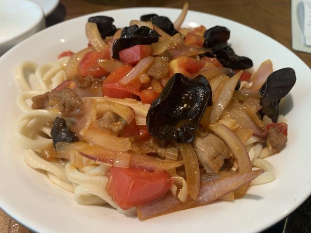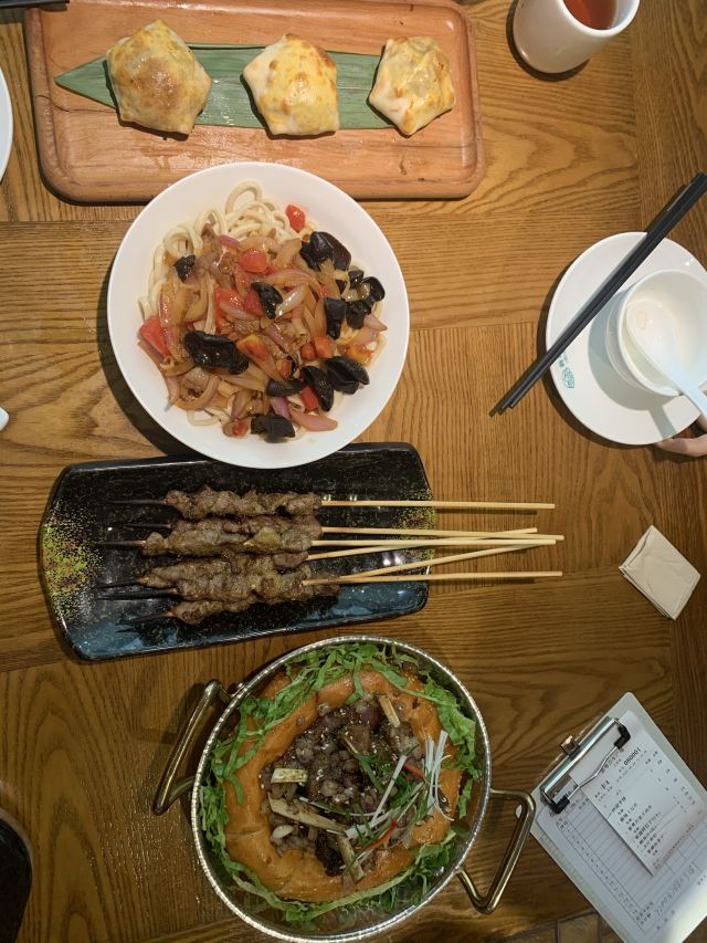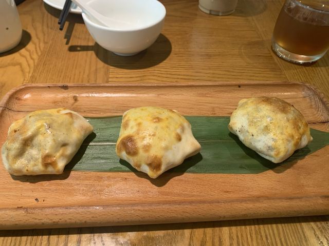 旅游度假朋友请吃饭,说是双人餐,估计四人才能吃完。 进门就闻到浓浓的肉香。饿的时候估计很开胃。 囊包肉,入味,肉嫩。 煎包子,味道不错,就是稍微有点油: 总的来说,味道还不错的。