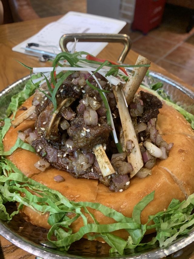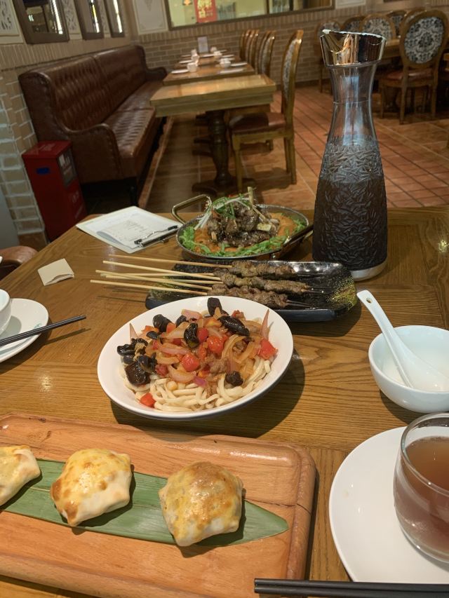 朋友请吃饭,说是双人餐,估计四人才能吃完。 进门就闻到浓浓的肉香。饿的时候估计很开胃。 囊包肉,入味,肉嫩。 煎包子,味道不错,就是稍微有点油: 总的来说,味道还不错的。