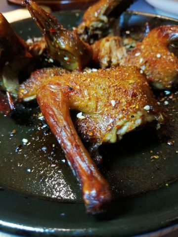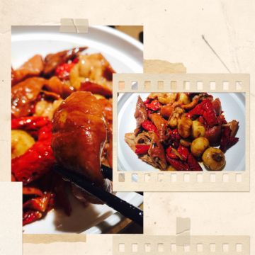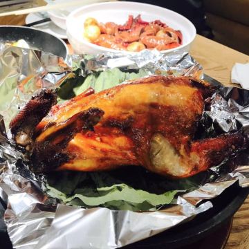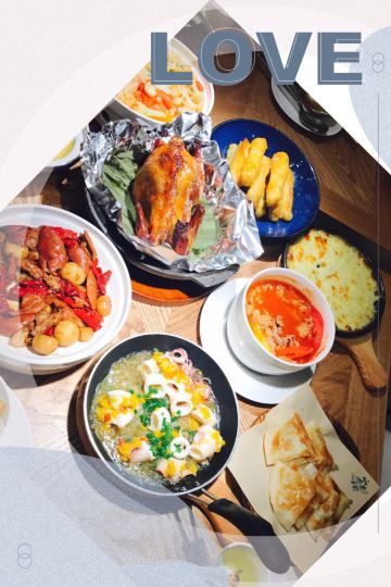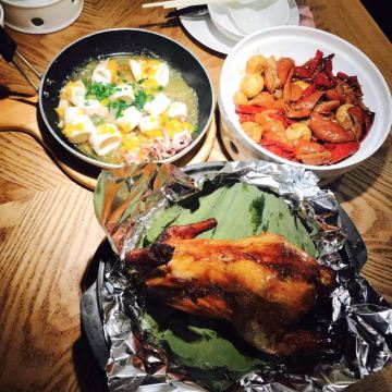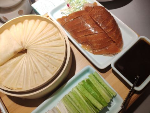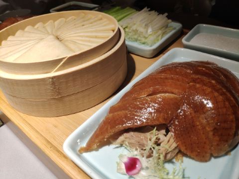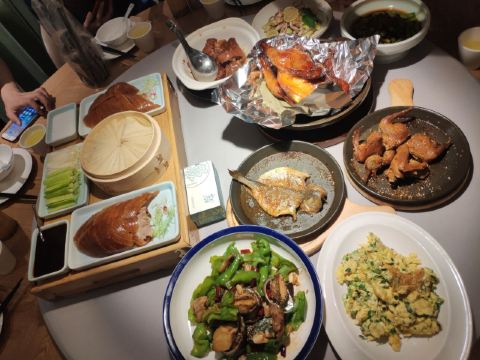 至尊烤鸭,葱油饼,黄椒小鱿鱼,葱油荞麦面,白菜猪肉水饺,榴莲酥饼,小鸡炖蘑菇,云山松鼠鱼,拔丝地瓜,毛血旺