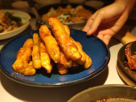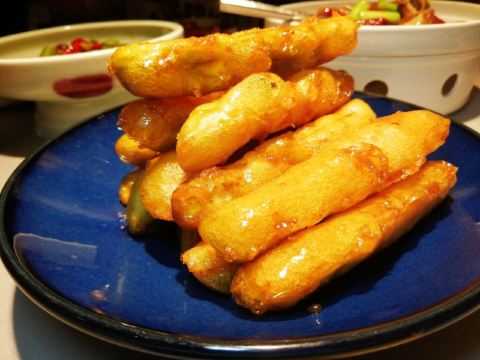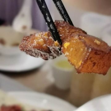 戴维斯是我和朋友约了过来吃饭,感觉换了好多新菜,看名字都很吸引,都想试,下次要约多些朋友才 行。想吃的东西太多,奈何肚量有限,挑了最爱的几款:冰川茄子、烤乳鸽、榴莲酥饼、雪椒卤 肥肠、黄椒焗小鱿鱼,当然还有我最爱的鲜果芝士烤红薯啦,酱骨架这次就没点了,怕吃不完。 冰川茄子第一次点,必试~口感相当棒!茄子外脆内嫩,入口微微的焦香芳甜~吃到停不下来 ,这道菜必须要上桌马上吃,置久了口感相距甚远。除了香甜的芝士红薯,榴莲酥饼也是大赞, 脆、软、香甜馥郁的口感,同样是吃到停不下来。还有煮的绵软入味的肥肠、辣得丝丝入扣的黄 椒小鱿鱼……总体出品,果然没有令我失望! 不知是否因为我们边吃边拍,店长主动走来问我们出品意见,很NICE的MM。会继续来~ PS: 凭餐厅消费单可以在商场办理免费停车,最高1000元可以免三小时。