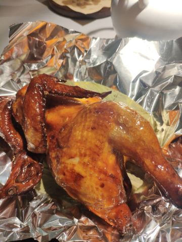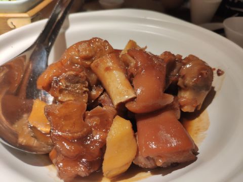天河城的7楼,饭市都要等位啊,门口的菜牌上好像出了好多新菜试试看。 烧鸡是招牌,必点的,下单到上来,需要等一点点时间,上桌就已经闻到很香了,卖相很吸引,可以请服务生帮忙剪开,再上桌。不过记得要趁热,皮脆肉嫩的, 山苏叶爽肉,山苏叶第一次吃,不知是哪种蔬菜,但是口感很好,配着爽肉,非常好下饭。 猪手,骨胶原满满的一盘好菜,焖得火候很够,非常入味,而且很淋,老人家都能吃,大爱。