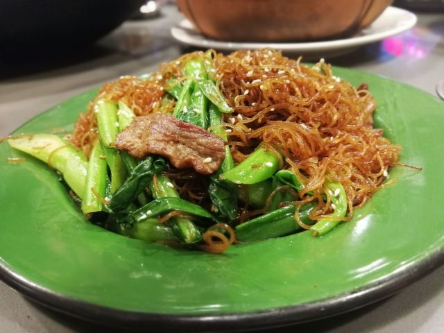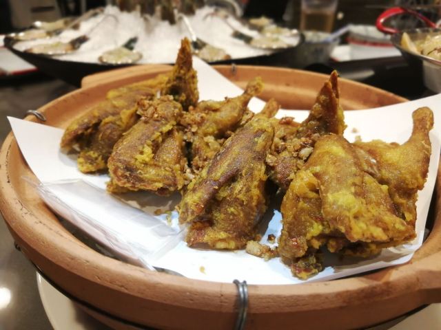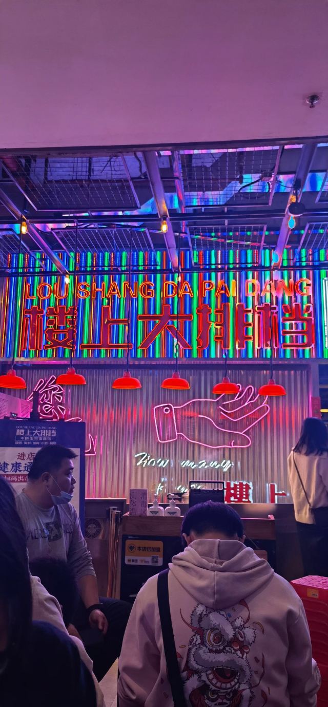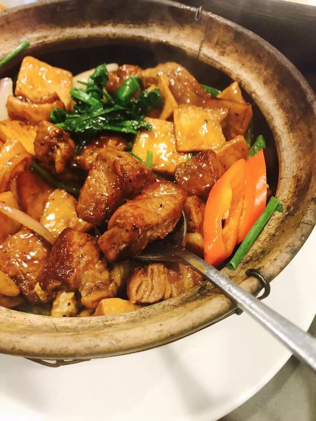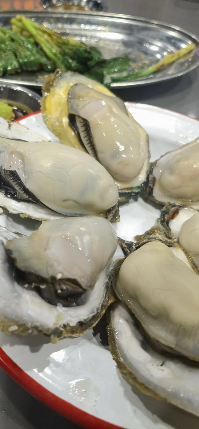 快过年了,抓紧时间买新衣服,商场里面新开的店,装修果然很有大排档风格,地方大,门口还有大海鲜池。 进去后,服务员很快安排座位。 石锅啫啫雪花肥牛,香喷喷吱吱的响,洋葱和大葱调味,一颗颗肥牛饱满,做得够香够入味,还有切片杏鲍菇,做得很好吃。怀旧五柳炸蛋很有儿时的回忆,酸甜可口,有了它可以吃上一整碗饭。 菜牌里有好多烧烤,有我爱吃的烤四季豆,嘴馋点了一份,味道不会太咸,四季豆够爽好吃。
