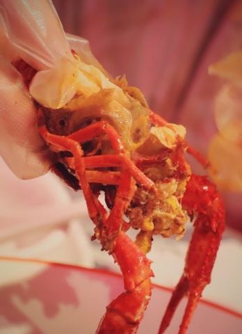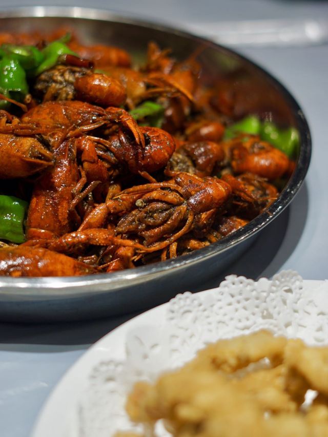 小圆子i[薄荷]环境:偏夜店酷潮装饰。半开放式厨房,优点是小龙虾下锅那刹那生猛新鲜看得见,缺点是下辣椒那刻,靠近厨房的座位的人真的忍不住咳嗽。 [服务铃]服务:上菜还算及时,差不多是可以一次性上完所有菜。。所以我推荐是先点两个菜式,吃得七分时再加菜。菜冷,其实我个人口味会觉得菜冷会积油和偏咸。 「十三香小龙虾」店内活动买二送一,两个人吃刚好,虾肉紧实,虾壳也忍不住吮两口。。就是没有挑虾线。 「口味花甲」花甲大个,是沙甲,肉质饱满鲜嫩,一盘的分量很足,好吃基本无沙。 「大碗茄子花菜」花菜脆口,适合一上桌就吃,放冷了茄子太吸油又偏咸连带花菜也咸,反正热着吃就对了。 「解辣冰镇黄桃」个人不推荐,口感味道像水果罐头,会甜蜜,不够爽口。终于使用了之前橙V活动轮购的49代100(现在没这活动了),总体就划算了。