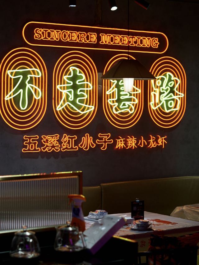 一朵花花1234五溪红小子·麻辣小龙虾(天河北店)广州天河区天河北路94号(光华大厦一楼)今天咖啡雷达失灵,只想吃小龙虾,路过在天河北,想起新开一间来自长沙的五溪红小子。设计给我很大冲击印象,到店被环境的中国元素吸引,霓虹灯做了不少网络流行语,又潮又好看。吃着满手油光的麻辣小龙虾,喝着冰爽清凉的啤酒才是今夏最佳的打开方式!吃小龙虾最最最不容错过的就是吃虾黄! ﹒【麻辣小龙虾】最受欢迎的就是麻辣口味了,先要喂一口小龙虾壳表面的汤汁,有辣有鲜有香,就像喝了一口浓浓的麻辣酱汤。虾和虾线都处理得很干净,虾都有开虾背,入味又方便。麻小的辣属于很温和的辣,并不呛口,加上十几种天然香料的配合,鲜辣与麻爽之气直逼每一处味蕾。﹒【蛋黄虾】用咸蛋黄碎碎和锅巴一起炸的小龙虾,看金黄色充满食欲。咸香酥脆这四个字,揭开虾壳咬下第一口就感受到。咸香完全与虾肉融合在一起,适合喜欢吃脆口的小伙伴。﹒【长沙臭豆腐】经过热油煎炸至酥脆后起锅,浇上特制的臭豆腐酱料,佐以香菜葱蒜小米辣。臭味仍若有似无,但是入嘴却外脆里嫩,豆味浓郁,回味无穷,味道像极了老长沙本地臭豆腐店。﹒【老长沙嗦螺】嗦螺清理得比较干净,没有泥沙,螺肉够大,一嗦一个,越嗦越有味~嗦螺果真是宵夜之魂。﹒【清水面】大多数人的小龙虾盛典里,都会以一碗清水面来做结尾。剩下的汁别浪费,无论是麻辣的还是蒜香的,都可以拌面喔! 以清水面告别这一顿才是对小龙虾最大的尊重。﹒【彩椒珍珠皮蛋,冰镇黄桃】边吃小龙虾边有小皮蛋相伴,吃到受不了也有黄桃来解辣。你还没吃?快来哦。来过了?再来吧。