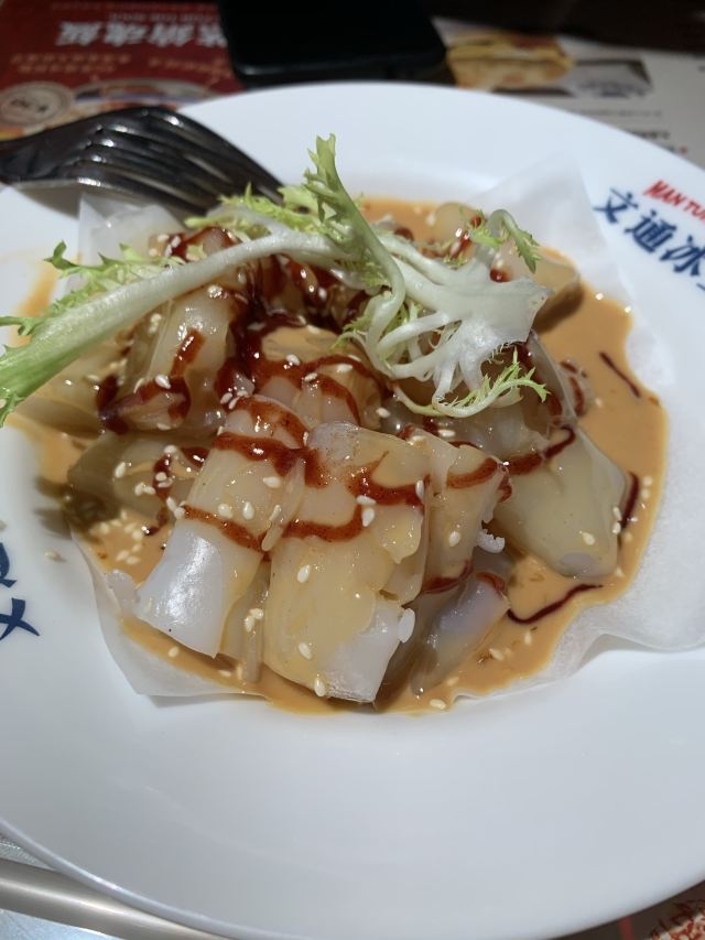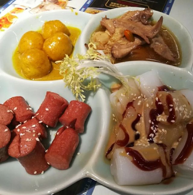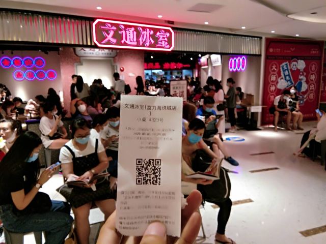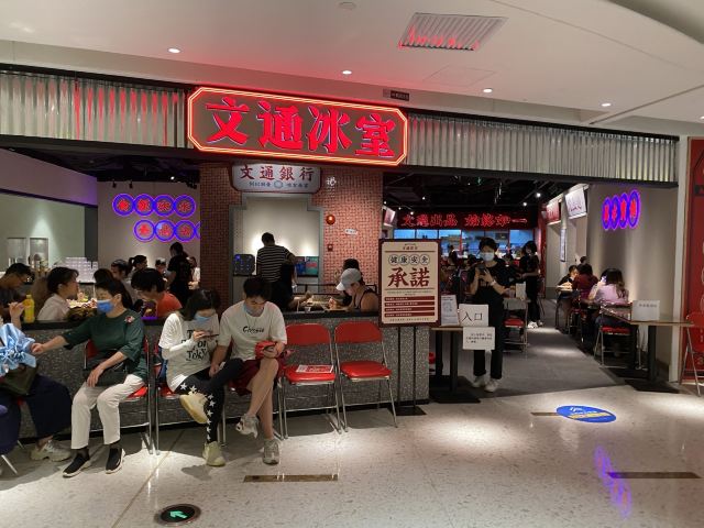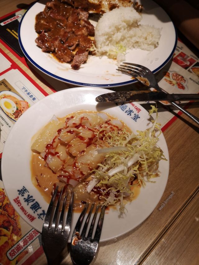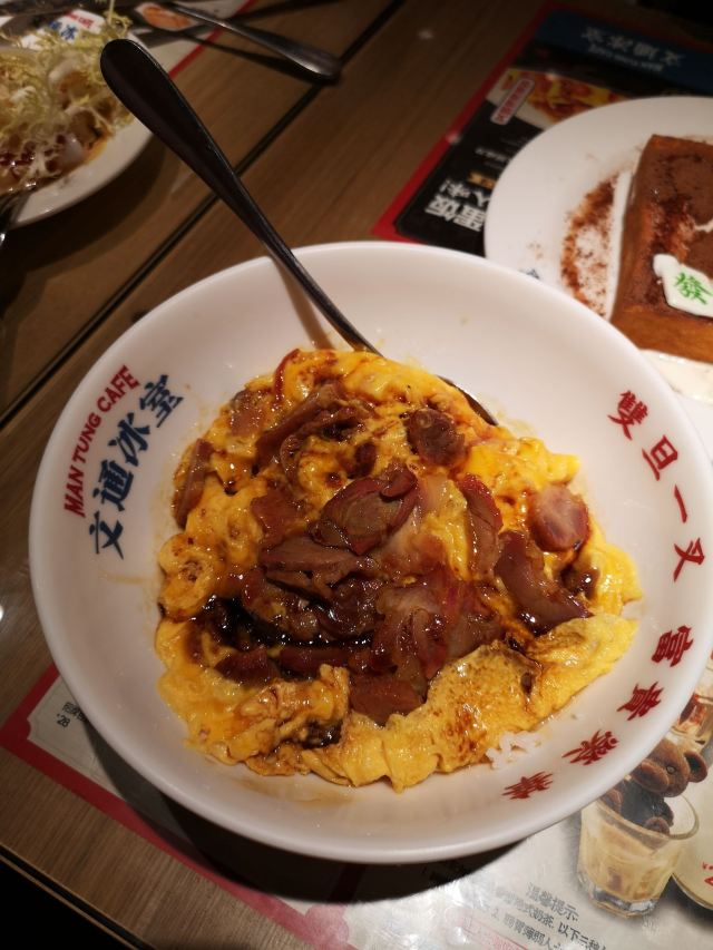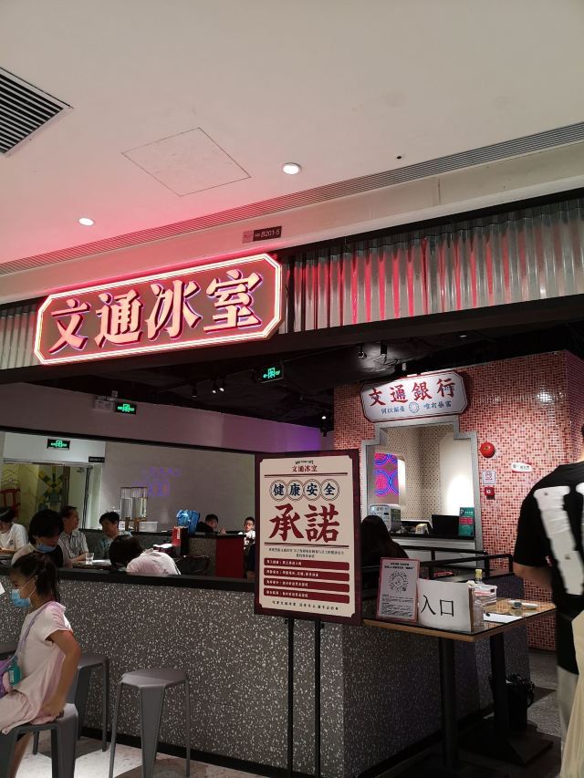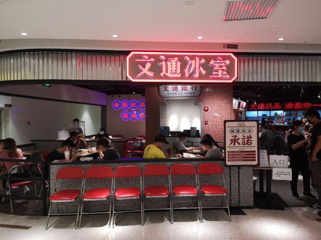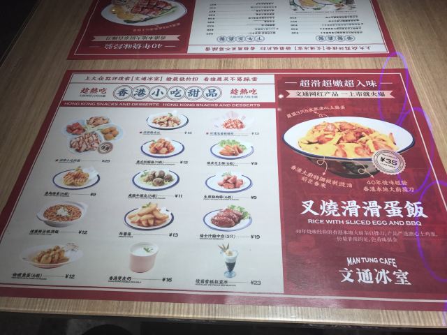 陌染MM橙V特权餐—-文通冰室,餐厅位于江南西路富力海珠城B区负二层,地铁二号线江南西站出来进入商场,那一层楼就是负二层了。我是劳动节假期某一天的,下午一点多来到这里的,好多人在等位,前面还有十多桌,大概2:00的时候终于吃上饭了。 [服务铃]服务:服务员的服务态度都挺不错的,大家都很热情,下单的时候还会主动问你饮料下糖和冰块的情况。上菜速度挺快的,每一份餐都主动为你配好了餐具,所以你也不需要重复使用一把刀和叉,空盘子也及时能够得到收拾。 「招牌黯然销魂饭」不吃过也不知道,原来这个饭是叉烧滑蛋饭,名字叫得实在太好了。下单的时候,服务员会问你,需要滑蛋还是太阳蛋,我这个是滑蛋,鸡蛋做得非常好,一点都不会老,嫩嫩滑滑的,非常好吃。叉烧很入味,肥瘦适中,分量也不错。青菜每一条都很青嫩,菜头他们都切掉了,所以吃起来更方便。 「招牌暴富漏奶华」这个西多士是他们的一大特色,整一块西多士上面洒满了巧克力粉,轻轻把中间部位挑开,就可以看到里面藏了有很多炼奶,他们把西多士中间的部位往下压,压出了一个坑,然后上面倒入了炼奶,如果切开了西多士,炼奶就会往外流。主要是味道真的挺不错,不会说很甜,而且他们用来炸西多士的油都很新鲜。