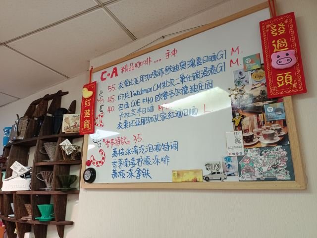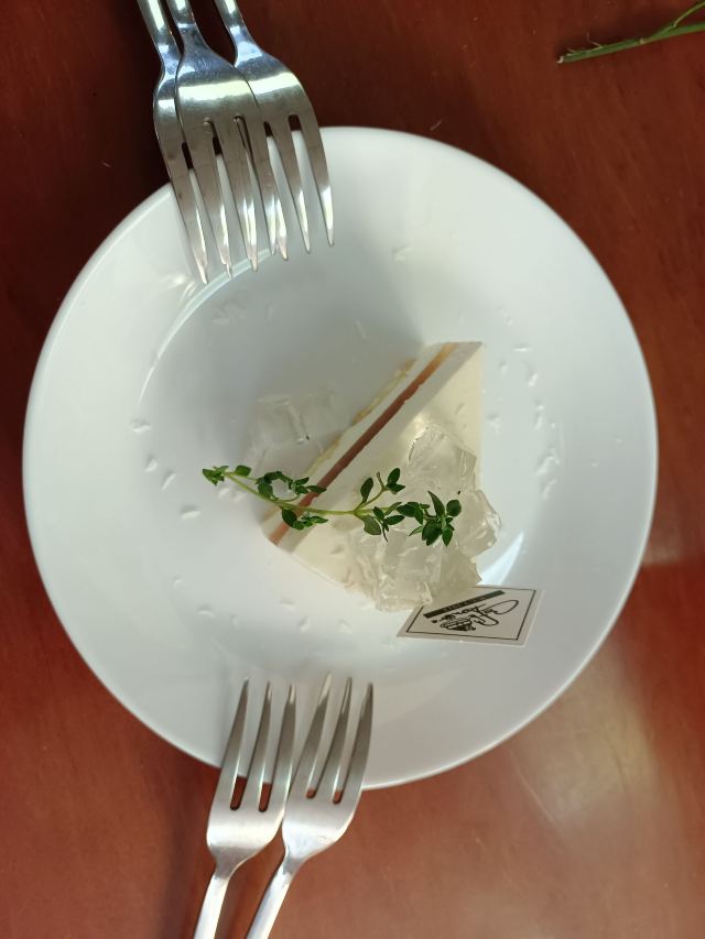 这好像是一家网红店,位于富邦中心写字楼1603,店面不大,给人的感觉像是一间小公寓改造的。听说这里供应的咖啡每天品种都不一样,蛋糕也是,而且是限量供应,售完即止。 这次过去点了杯巴西COE#4a卡杜艾半日晒手冲,老板娘亲自操作,看着亲自称豆,磨豆,烧水,测水温,还用量杯测冲水量,每一个环节都很讲究。折腾一番后端上来,一只古典典雅的陶瓷杯装着,还配一只加了冰块的玻璃杯,老板娘说喝喝热的,还可倒点进冰杯,尝尝冰的口感。说实在的,口感一般,没品出这款豆的优异之处,苦酸醇香之类的评价维度没用上。只能期待下次再试了。 另几张小桌的小哥哥小姐姐们忙着拍照,不大的空间里就显得有些喧闹,安安静静地品上一口咖啡,再尝一口点心,只能又是一种期待了。