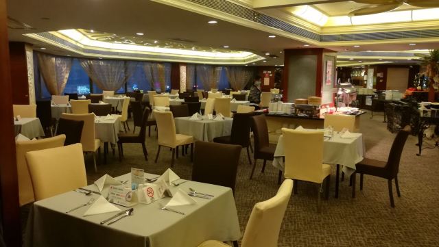 Poli Restaurant (xiezoufangcanting)刚吃完了珀丽酒店协奏坊餐厅的自助餐,品种中冷热菜品都很齐全,但热菜的出品很一般,就如普通快餐店一大盘一大盘炒熟端上来的感觉。海鲜类和扒类这些高端一些的食品就集中在一个位置上。感觉海鲜类摆设的位置小,一开始长脚蟹脚就被抢光了,后来又补充过两三次,但由于摊位小,几次都眼看着别人拿光了自己又拿不到。扒类和牛仔骨都很嫩很美味。冷热饮品都很丰富,还有自动咖啡机和酸奶机,雪糕蛋糕沙律水果等都有了。就餐环境高档宽敞,就餐客人不算多环境也算安静雅致,还有可观外面城市夜景的宽大窗口,服务员热情有礼,收拾餐具食物残余的也很勤快,对于客人要上洗手间等的也能主动带路指引,服务能拿高分。如果能改善一下熟食热菜的出品和种类卖相就更好了。除了食品丰富多样外,还有中西式汤和糖水,更有养生的一盅海底椰炖汤供客人选择。总的来说,从就餐环境食品来说,我这次99元的优惠价享用的协奏坊自助餐的性价比是非常高的。希望协奏坊餐厅越来越好。还有早前珀丽酒店的自助餐迁到了麦当劳那边二楼的悠扬阁,现在已回迁到酒店主楼的五楼协奏坊餐厅了。