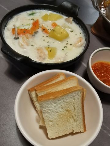在凯德楼下的一家简餐餐厅,掌上生活五一有活动,51抵100。环境挺好的,门口外面还有个打卡的区域,挺好看的,可以拍照。店里有打卡活动,关注了送雪糕 香neinei奶油炖菜:挺香滑的,但份量有点少,搭配了面包,可以蘸着汤吃 满满牛肉豆腐锅:放在桌面,开电就煮上了,才发现桌子隐藏着个炉子,放上去直接能煮了。味道酸酸甜甜的,还可以 鸡中翅:挺好吃的,推荐