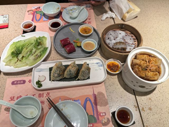 点都德聚福楼差不多是新式平价茶楼中人气很旺的一家,每一家分店都是人气满满,惠福东路这家也不例外,茶水都是功夫茶让人备生好感,茶点是在传统的基础上出了很多创新,而且都是现点现蒸。创新茶点中以红米肠、三文鱼挞等都备受好评,每隔段时间还会出新品。