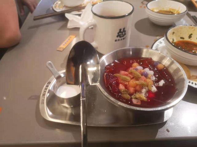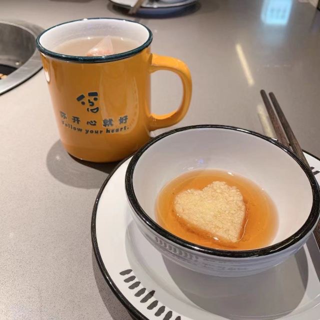 SaintShaina99本来前几天想过来吃,结果5点多拿号等到8点都没得吃就放弃了[捂脸]这次早早过来不用排队真好[呲牙] 九毛九开的这家新潮火锅店感觉真不错,服务员超热情,还有空没空过来秀段街舞,感觉不会跳舞都不好意思过来上班了~ 店内环境不错,挺光亮干净的~ 这里的锅底只有一种——牛油辣搭果蔬锅,很适合选择困难症的~ 「鲜切黄牛肉」这个不愧是招牌,煮一煮配上特制的酱料,好吃的不得了,秒杀那些潮汕火锅~ 「纯手打的越南青虾滑」放在辣锅煮一下,吃起来很爽口~ 「鲜鲜鲜鲜鸭血」作为一个不吃鸭血的人,看到这么特别的新鲜鸭血,忍不住试了一下,嫩嫩滑滑的好好吃,推荐~ 「美国雪花肥牛」大大一盘堆成火山似的肥牛,肉质不错很有口感~ 「屠场生抠鲜鸭肠」吃火锅怎么能少了鸭肠呢,灵魂般的存在~ 「智利黑猪五花肉」摆碟不错,很好吃~ 「午餐肉」实实在在的午餐肉,加点辣椒粉感觉像吃烧烤~ 「香卤耙耙大鸡爪」这个鸡爪极力推荐,放在辣锅里煮两分钟,辣辣的超级好吃,最适合鸡爪控了~ 「霞浦超鲜海带苗」这个海带看起来挺新鲜的,味道也不错~ 「蛋煎糯糍粑」很香口,感觉不沾酱更好吃~ 「真香香水柠檬茶」吃火锅的标配,很解腻~ 「珍珠奶茶」很好喝,珠子也很弹牙~ 「酸梅茶」这个采取自由斟方式,酸酸的也很解腻~ 「雪糕」吃完火锅后,再来个自由斟的雪糕,好舒服~ 值得一提的是这里点饭居然还有半碗点的,真的只是装碗的一半喔,很适合小朋友和饭量小的,不用再为分饭麻烦了,好体贴~ 另外洗手间还提供漱口水,衣物清新剂,香香的出门真不错~