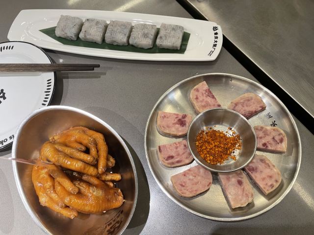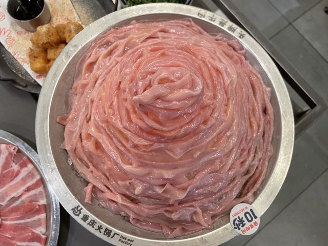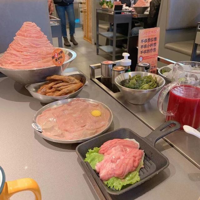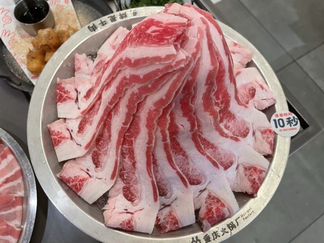 鲜切黄牛肉,屠场生抠鲜鸭肠,脆嫩牛黄喉,大刀厚毛肚,美国谷饲牛舌,香卤耙耙大鸡爪,纯手打的虎虾滑,鲜鲜鲜鲜鸭血,雪糕,美国雪花肥牛,火锅厂现炸小酥肉,藤椒黄牛肉,牛油辣搭果蔬汤