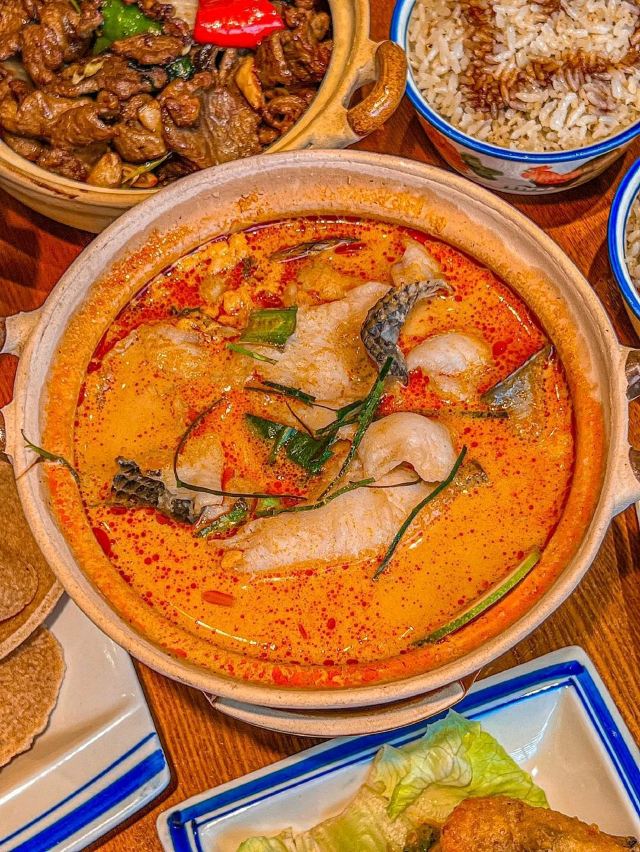 迪斯卡沃东南亚风格的餐厅~ ✔️海南椰子鸡,鸡皮劲道有韧劲, 鸡肉细腻多汁,简直太诱人! ✔️招牌肉骨茶,浓香入味,好喝😋 ✔️马来咖喱牛肉,上层是牛肉片, 下层是爽滑的咖喱蛋,再配上咖喱酱,完美! ✔️香酥豆腐,金黄的外壳酥脆可口! ✔️鸡油米饭🍚爱心图案好暖心哇💗