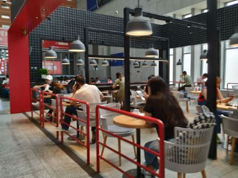 在候车厅内,竟然也推出粽子了,真是有意思了。单个粽子一个9元,鸡翅汉堡等价格也差不多吧,相比大城市的车站店价格并没有涨价太多。有用餐区域还不错,排队的人蛮多。