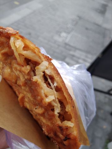灯盏糕绝对是温州街边小吃文化的一大代表。咬一口下去,酥脆的口感之后紧跟着蔬菜的清香,里面有很多萝卜丝,还有肉馅,内容很是丰富。若是吃上刚出炉的,味道更好。