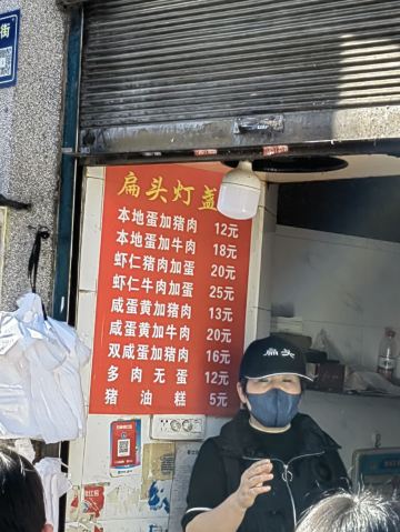 灯盏糕,咸蛋牛肉,猪油糕,咸蛋猪肉,软大饼,乌鸡蛋加猪肉,虾仁加蛋加肉灯盏糕,萝卜丝,长人馄饨,咸蛋多肉,猪肉有蛋灯盏糕,油墩子,扁头灯盏糕