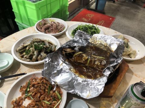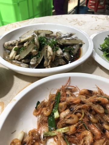 应该是老牌传统的海鲜排挡,定位不是很准,但到了附近问一下人就能找到 【环境】 生意很火爆,沿街放满了桌子,环境就是大排档的环境,很有烟火气,周围也都是当地人的感觉 葱油蛏子很肥,口感也挺新鲜的,而且很干净,没有沙子 皮皮虾做的水煮的、味道比较淡,但虾个个很饱满 两个人菜点的有点多,感觉很适合一群人来吃