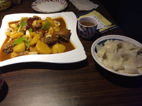 这家店算上天津不错的新疆菜了,特别是大盘鸡很好吃,配上面条好好说。酸奶味道很不错,每次都吃