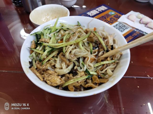 五一假期全家自驾游从济南到天津,游玩市里来到开发区看国家海洋博物馆和基辅号航母,在入住酒店搜看附近美食,也就是这家八爷手擀炸酱面了,进去一看好家伙还是相声名家杨少华老爷子提的字,糖醋面筋好吃甜口,我点的是天津打卤面,老婆孩子吃的是炸酱面,面确实劲道有嚼头,至于卤子吗一人一个口味,总之还是值得推荐的