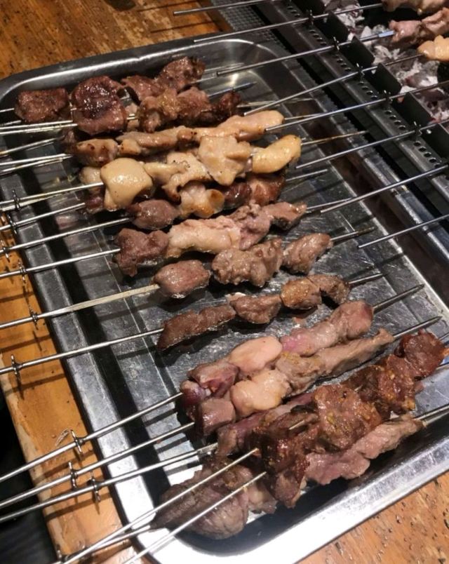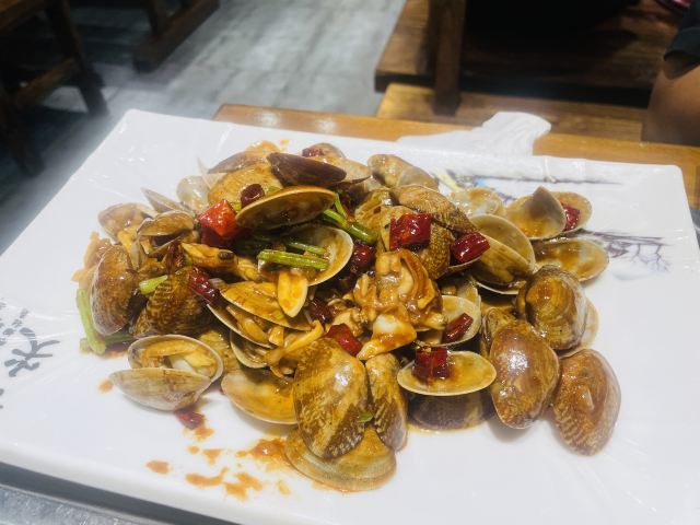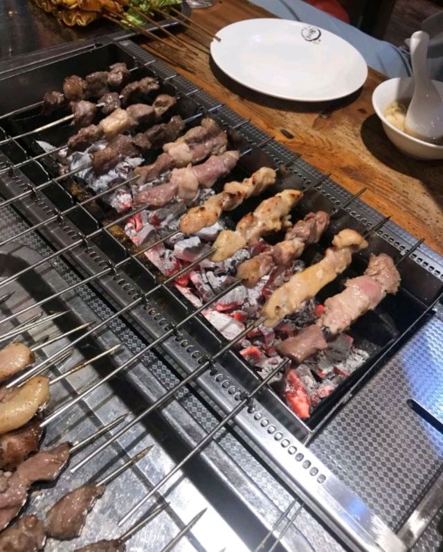 #拍拍身边烟火气 #0元玩转这座城 这家炒蛏子,很惊喜,肉嫩,干净没沙子,不会太咸还有点甜口,微微辣,味道很好吃。炒蛤蜊也是不错。 这家店的烧烤炉很高级,自动转签,肉串烤到熟,自己可以继续烤,火候看自己,这种半自助,能让口感刚刚好。肉串都不错,羊肉串五花肉都很好吃。啤酒买二送一实惠,两个人吃到撑花了280多。就是空调不够围着烤炉很热。