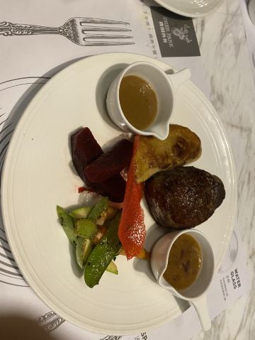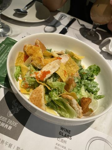 环境不错,厨师推荐牛排口味不错👍配的鹅肝口味不错👍,提拉米苏蛋糕🍰挺好吃!蔬菜沙拉中规中矩的,一般般吧!蘑菇浓汤一直是最爱喝的。