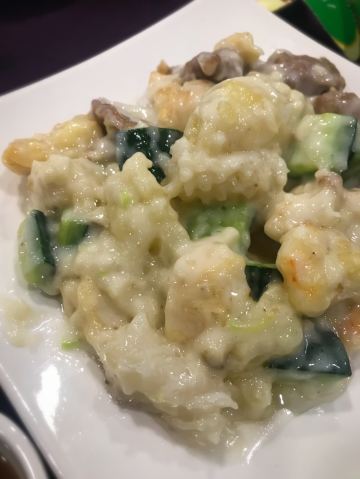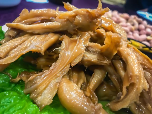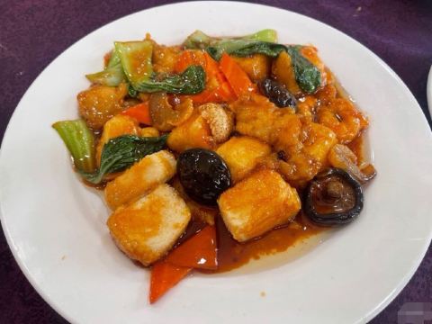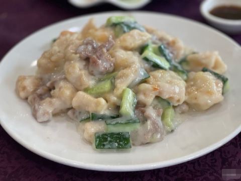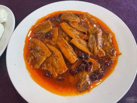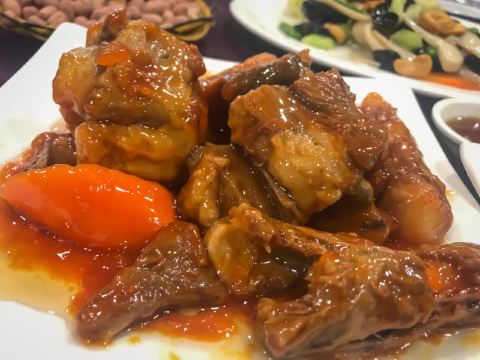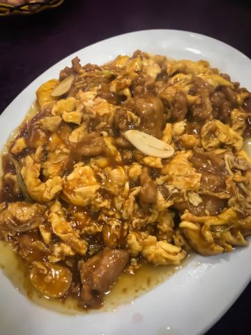 让人喜欢的一家“老字号”天津菜馆 和朋友定了这家老字号餐厅一起喝酒聊天。工作日进门排队不久就有座位了,相比其他老牌天津菜馆子,这家服务态度很热情,让人比较舒服。 排队时就点好了菜,上菜很快。 一小盘「芥末鸭掌」刚好和「花生米」一起当作下酒菜,辣度刚好,鸭掌越嚼越香; 「红烧牛尾」 用胡萝卜搭配牛尾,意外的美味啦!香而不腻是本事,牛尾炖的很烂,色泽也漂亮,非常喜欢! 「全爆」 莫名喜欢这道菜,几乎去每家清真老馆子都会点,他家出品我是很满意的。勾芡汁色泽明亮,黏稠度刚好,吃完盘子里不会留有多余的汤汁。虾仁、鸡胸肉、牛里脊、鱿鱼、鲜贝、黄瓜,样样食材都好吃! 「醋溜肉片苜蓿」 肉片鲜嫩滑口,醋味刚好到位,没压住牛肉和鸡蛋的香气,味道也不错的; 「腰果全素」 大受欢迎的一道素菜,在大块吃肉之后来上一份,吃的就很舒服了。 一场不墨迹的叙旧酒局,吃的舒服,喝的也舒服,特别买了蓝瓶二锅头来应个景。 性价比很高,下次再去要尝尝朋友推荐的「番茄虾仁」。