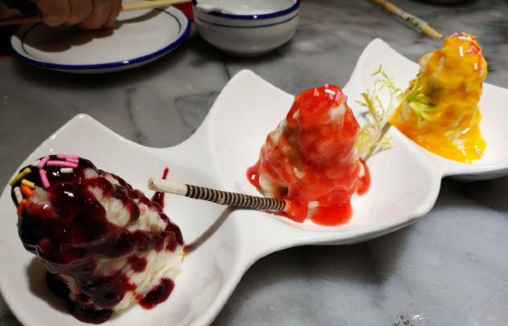 奕博狮子头,疯狂大拌菜,东坡肘子,糖醋鱼片,拆骨肉,鸿运当头狮子头,木桶小目鱼,铁板牛柳,圆白菜炒粉条,蓝莓山药,鲜果时蔬大拌菜,老艺人烧三丝,新爆三,贝勒爷烤肉,孜然酱烤鱿鱼