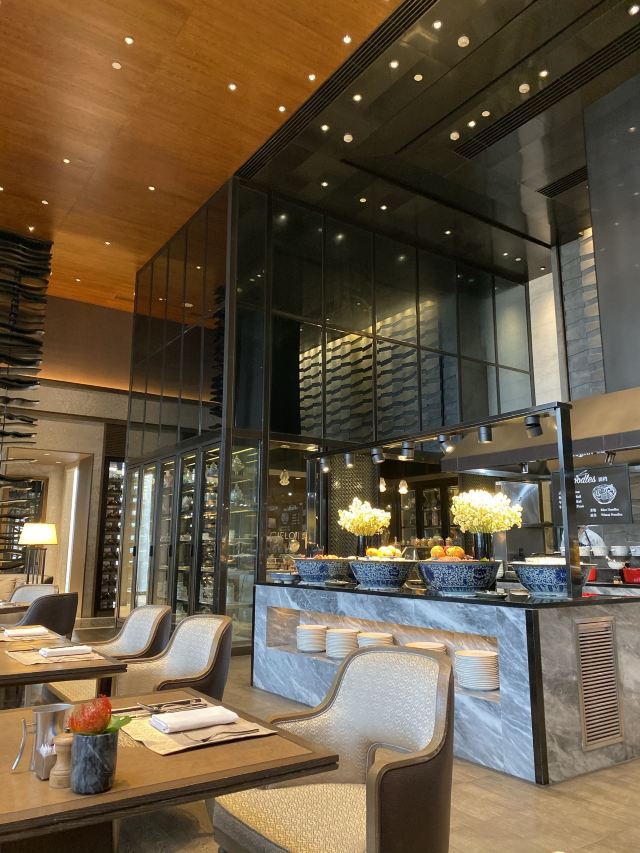意荟•意大利餐厅供应早餐、午餐和晚餐,采用开放式厨房概念,配备木烤披萨烤炉和一间步入式干式熟成室。它不仅是一家创意呈现意大利正宗美食的现代餐厅,也是无可挑剔的商务应酬和社交聚会之所。餐厅共设有 152 个座位,白天是客人享用营养均衡的自助早餐的地方。餐厅从国外米其林二星餐厅特聘主厨坐镇,在午餐和晚餐时间段为客人精心烹制地道别致的意大利美味。白天在餐厅用餐,可沐浴在在温暖明亮的自然采光中,通过落地窗欣赏美丽的城市风光。餐厅设有意式特色的肉类风干室,搭配10 余种来自全球的盐,口味新奇独特。资深厨师团队在开放式厨房为客人现场烘烤披萨,香味满溢。客人还可在此享受城中上好的牛排体验。