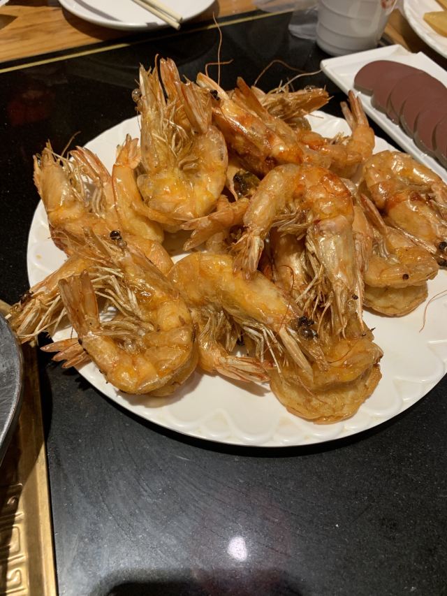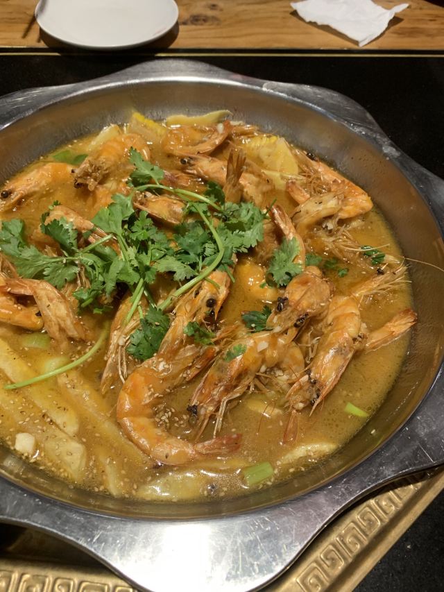 建议能吃辣的小伙伴还是最好吃麻辣口味的大虾,这样的话,大虾更有味道。而且吃完大虾后的汤,涮肉和菜,口味也更加独特。生菜和油豆皮,是不二的选择。