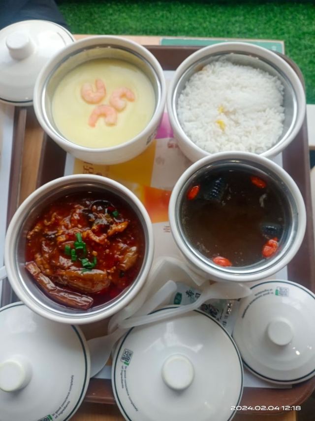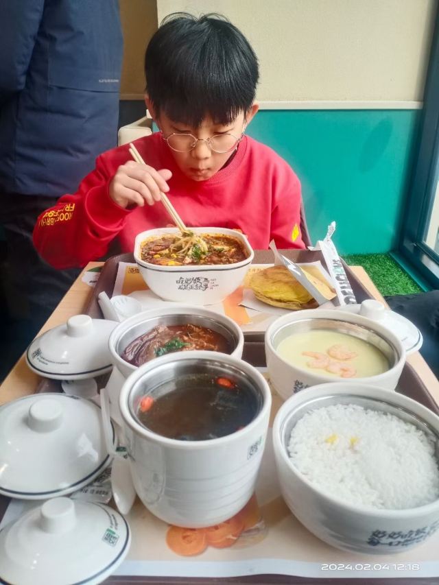 大杜杜岁事只如此,匆匆又小年。 兰灯看独照,柏酒已先传。 月隐金台雪,香霏禁树烟。 故园今万里,南北寸心悬。 ————《腊月二十四夕偶成 其一》明 · 金幼孜 腊月二十四距离春节更近了,今天是孩子假期训练的最后一天,完成训练后,祖孙二人来到|魏家凉皮(鞍山道店)^吃一顿中式快餐。“魏家凉皮”是西安当地知名连锁小吃品牌,在天津有些年头了,他家主打凉皮,鸡腿堡更是经济实惠。 今天爷俩点了酸辣粉、肉夹饼和茄子饭套餐。 |酸辣粉^麻、辣、鲜、香、酸且油而不腻。 |纯瘦肉夹馍^外观焦黄,条纹清晰,内部呈层状,饼体发胀,皮酥里嫩,火功到家,馍酥肉香,爽而不腻。 |鱼香茄子饭^这个套餐包括茄子、米饭、鸡蛋羹和人参乌鸡汤,味道可口,营养均衡,经济实惠。 这家店值得推荐!