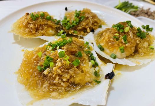 这家店环境大气优雅,有大厅,也有包间,停车场也很方便,服务周到热情,他家的海鲜很好吃,蒜蓉粉丝蒸扇贝很大一只,感觉吃了两只都有点饱了。