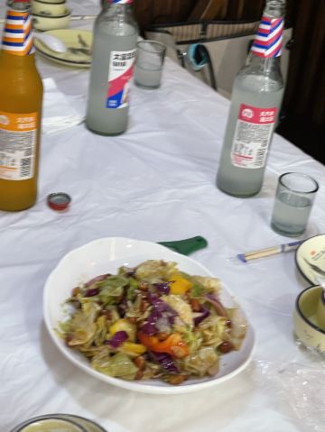 八仙豆腐 天津代表菜,八种海鲜加豆腐 咸甜口,食材很丰富 也新鲜,个人有点点吃不惯。炒麻鸡很入味,辣味酱味刚刚好,不是地方特色但味道不错。椒盐锅巴菜,有点像小零食 酥酥脆脆,一口一个 炸的面片裹椒盐。