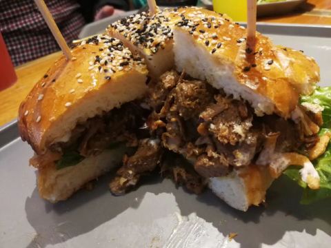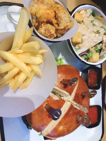 开了很久的一家品牌店,火爆程度有所下降,但上座率依然乐观,基本全满状态,翻台率也不低。之前吃过,这次再次光顾之。说点不足之处吧,餐桌台面有点小,菜品摆放略显拥挤。服务员水平一般,不少人旁若无人,叫了几遍终于有人应答,距离南方服务业水平还有不小差距。其他方面都还不错,量大价格也合适,汉堡口味也蛮喜欢,可以给赞,五星好评鼓励一下,再不改进有降维可能。推荐!