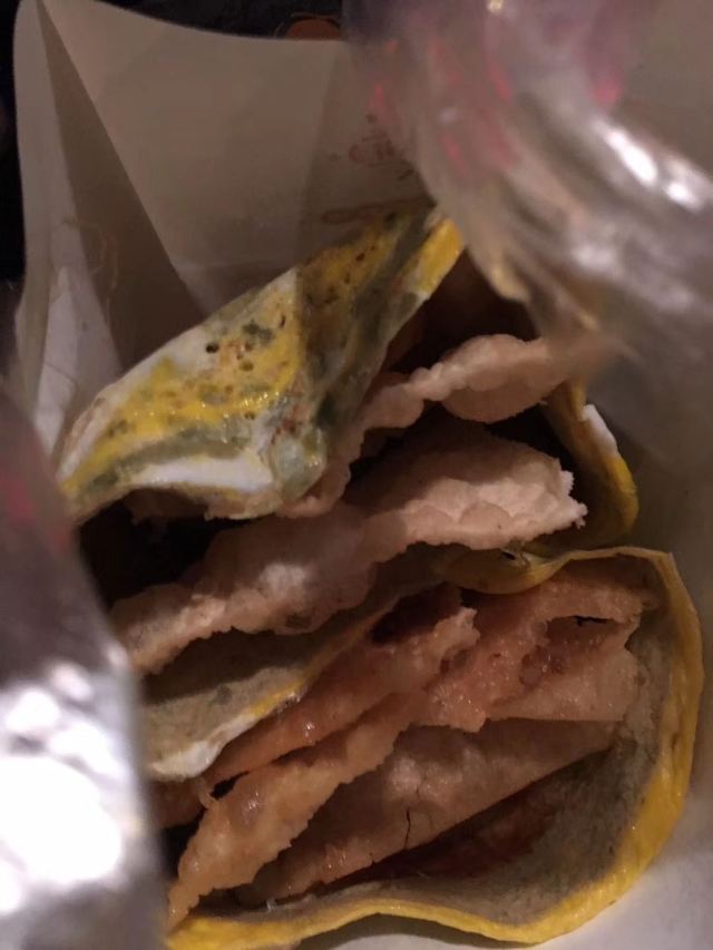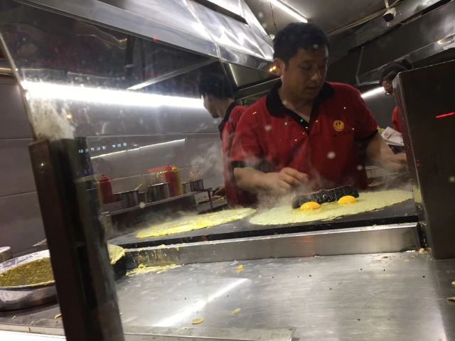 一家在夜晚和凌晨才开的小店,不少人会买上一份双鸡蛋果蓖儿站在路边就大快朵颐,绿豆面皮软糯劲道,果蓖炸得酥酥脆脆,再加上面酱腐乳葱花,成了当地人都啧啧称赞的味道。