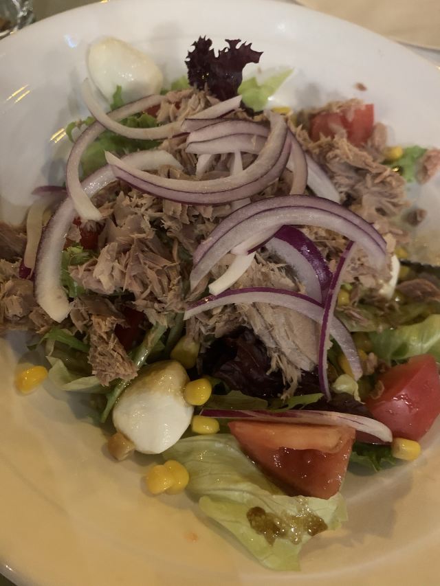都说五大道的西餐各有特色很值得品尝 朋友带我来的ciao pizza 天热的时候屋内空调温度适宜很舒爽 晚餐客人不多 吃惯了饼披式pizza 今天来点新花样 卷着烤制的pizza 造型独特现活的面卷着芝士和培根 咸香型 味道真棒 一下子干掉3个 比传统的吃着带劲还好玩 他家意面让我惊艳了 怎么能这么好吃呢 这大厨哪里找的 每一根意面都非常入味 这款意面成为我挚爱的一款 西西里沙拉性价比高 里面的小番茄个个甜新鲜果蔬营养健康 苹果派朋友极力推荐的一款 好多层太酥了 苹果的香甜加上独特的酱汁有点像老式甜点的味道 很独特 其它家没有的美食推荐过来品尝呦