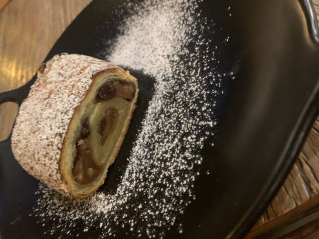 吃过很多家西餐唯独他家的味道留住了我的胃,有幸尝到实属幸福啊!店铺位置在五大道上,旁边也是一家餐厅一不留神容易错过,店里布置有特色,开放式厨房,现做现吃呈现最好的温度。索芙特之吻浪漫的名字总有自己的故事,一小团里面包裹的培根肉和芝士拉丝饱满很香。意面是我喜欢的软硬度,酱汁口感适合我,吃口回味停不下来。苹果派非常赞的一款甜品,里面有坚果,内容多的不可思议,绝对好吃。
