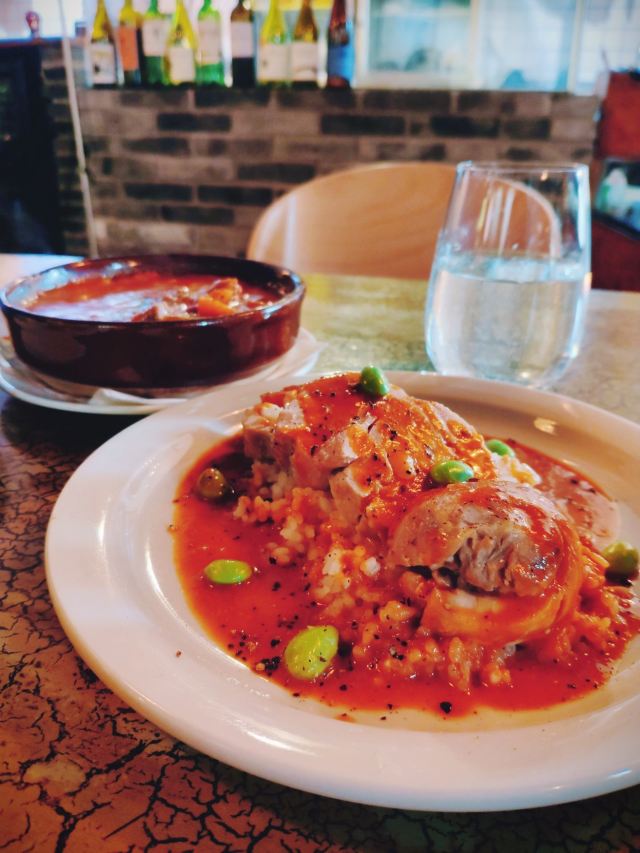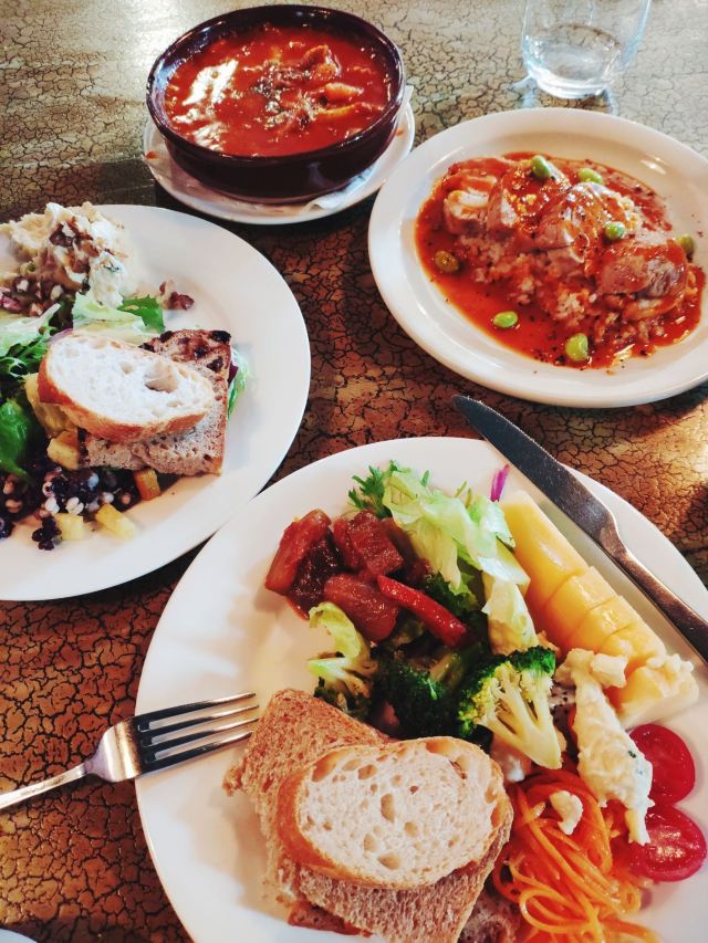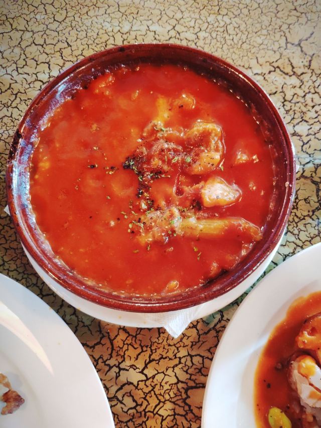 Habuka the Butcher#小仙儿食光记# ❤ 羽深肉铺 小成都道187号犀地朗文名邸商铺(九十中学对面) 慕名而来,乘兴而归~没想到这样一个不起眼的门面,还藏着这样一个“宝藏餐厅”~ 一进门是一个小超市,走上长长的楼梯后,一片很微小却精致温暖的空间,瞬间带来扑面而来的“穿越感”~餐厅的布局、装潢、摆设超有格调,像是穿越到一家欧洲的小餐馆,尤其在初冬周末的午后,顿时感到惬意&慵懒~ 番茄炖牛肚 ¥49.5 貌不惊人,却有着充斥味蕾的浓郁番茄味,还有炖得软嫩入味的牛肚、牛筋、鹰嘴豆、番茄块儿……配上面包,简直棒呆~ 大虾鸡肉卷 ¥68.4 喜欢吃浓郁虾味的小伙伴一定不要错过~虾汁熬的汤汁裹满鸡肉卷和喷香的黄油饭,回味无穷~鸡肉卷着虾肉,两种口感完美相融~ 红烩牛肉蛋包饭 ¥48.4 这道菜的精髓在于“蛋”,不是传统的蛋皮或者蛋饼,而是透着奶香的绵软炒蛋,入口超级惊艳~ 自助蔬菜沙拉 点任一主菜,¥20/人 虽然品种不多,但少而精~蔬菜、水果、面包、汤品样样俱全,其中土豆泥沙拉、微辣番茄西葫芦、腌制西蓝花都超好吃~ 反烤苹果挞 ¥25.8 淡淡的肉桂味道搭配甜甜的苹果,经典~旁边一抹超细腻的奶油,刚好中和了挞饼的干~ 来之前最好提前预约,不然很容易没位置~环境菜品都如此有魅力,难怪这么多人对这里如此倾心~❤