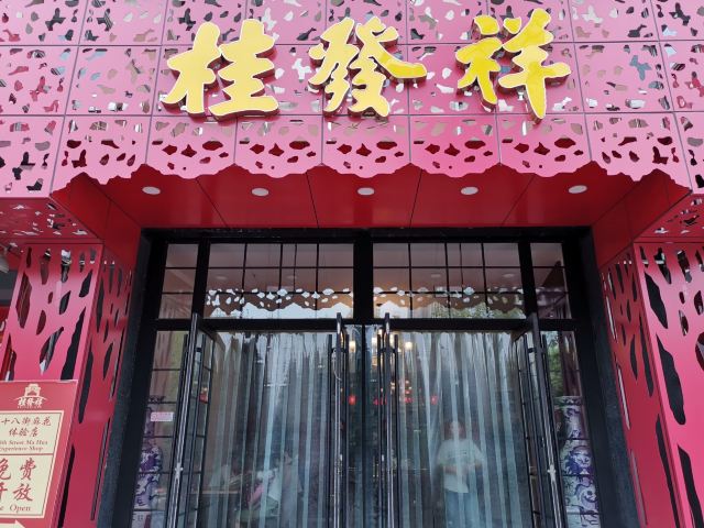 就在幸福道和王串场五号路交口,店面不算很小,种类很多,麻花,皮糖,八件,各种天津特产吧,还有别的,例如饼干,果丹皮,各种小吃,经常来这里买小吃吃。