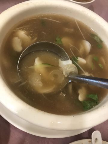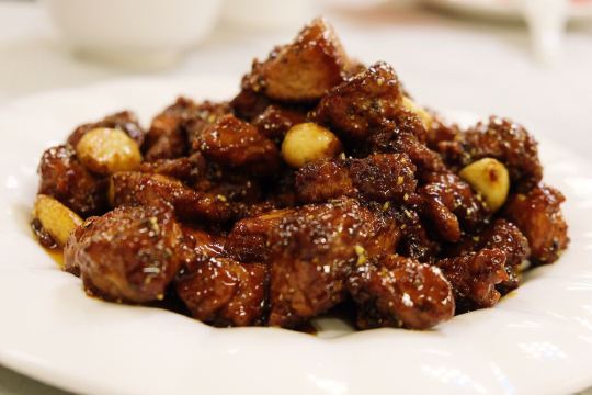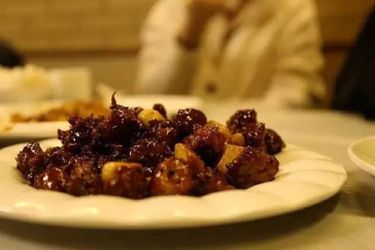 GUI YUAN对于天津,满脑子都是煎饼果子等早点,关于天津菜还真的没有啥感觉,搜天津菜看到这家评价还不错,貌似还是某音网红就来试试了 建议提前打电话预约,到店如果有坐可以直接入座,如果过号/没有座可以优先安排,挺人性的 吃什么 1⃣️黑蒜子牛肉粒 推荐菜,牛肉很大粒,有焦脆的口感,甜味很重。前几块觉得还不错,到后面会有些腻[难过] 2⃣️八珍豆腐 海鲜盖在微炸的嫩豆腐上,刚刚端上来的没有蘸上酱汁的豆腐还可以,稍微放一会儿后,皮就糊掉了。然后上面的炒海鲜,个人觉得真的不好吃[抓狂],一股子腥味还带着甜,难道是口味问题? 3⃣️黄瓜墩 芥末不算冲,黄瓜爽口的,还算可以; 4⃣️醋椒汤 带点酸味的鸡蛋汤? 可能个人口味的原因,真的吃不惯
