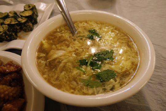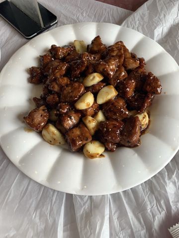 楚啊楚啊对于天津,满脑子都是煎饼果子等早点,关于天津菜还真的没有啥感觉,搜天津菜看到这家评价还不错,貌似还是某音网红就来试试了 建议提前打电话预约,到店如果有坐可以直接入座,如果过号/没有座可以优先安排,挺人性的 吃什么 1⃣️黑蒜子牛肉粒 推荐菜,牛肉很大粒,有焦脆的口感,甜味很重。前几块觉得还不错,到后面会有些腻[难过] 2⃣️八珍豆腐 海鲜盖在微炸的嫩豆腐上,刚刚端上来的没有蘸上酱汁的豆腐还可以,稍微放一会儿后,皮就糊掉了。然后上面的炒海鲜,个人觉得真的不好吃[抓狂],一股子腥味还带着甜,难道是口味问题? 3⃣️黄瓜墩 芥末不算冲,黄瓜爽口的,还算可以; 4⃣️醋椒汤 带点酸味的鸡蛋汤? 可能个人口味的原因,真的吃不惯
