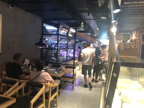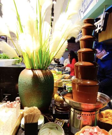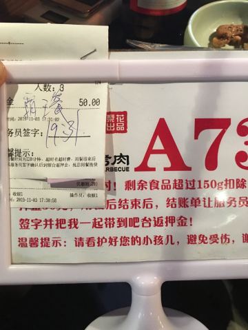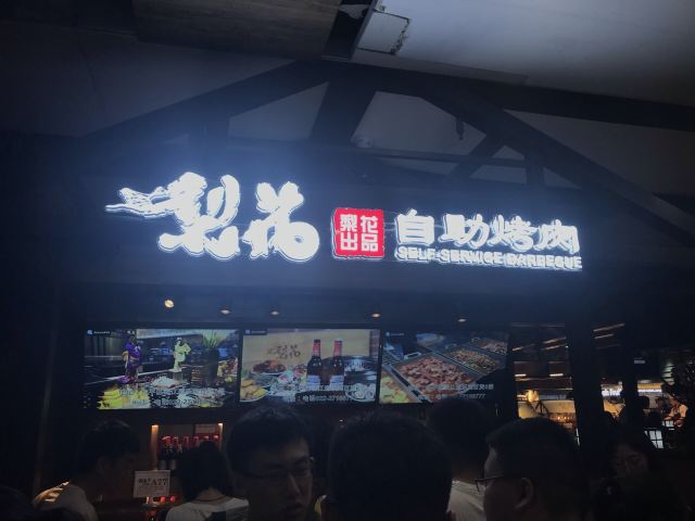 Lihuazizhu Barbecue (tianhecheng)乐宾商场楼上的自助烤肉,店面很新应该开的时间不长。和朋友大周末不到十二点过来就已经人满为患,拿了号一直等到一点半才等到桌,好在门口有哈密瓜西瓜以及曲奇爆谷可以延缓饥饿。内部可以选择的种类还是很全的,比较喜欢里面各式各样的纯果汁饮品,酸奶方面只有益生菌的,建议增加浓稠的酸牛奶就更好了。