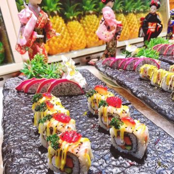鸡腿肉丼,温泉蛋,烤肉,幸福满满牛肉丼,味增汤,辣白菜,炭团牛排丼,吊炉烤肉,酱汁,培根金针菇,黄金松阪豚丼,炸鸡块,烧烤,鱼籽肠,生鲜刺身鱼片,水果,甜点,巴西烤肉集合,甜虾,蜜汁牛肉,LA牛排,蛋挞,上脑牛肉,肉类,招牌烤串