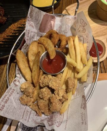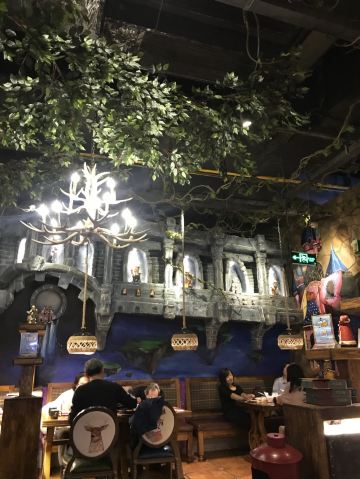 这是一家超级有特点的餐厅,走进餐厅仿佛走进了魔法世界,十分梦幻也十分有趣。多样的美味菜品也深深地吸引着每位食客。 皇家蟹腿披萨是人气很高的一道菜,披萨夹着甜甜的馅料,蟹腿新鲜美味,一口下去回味无穷。芝士焗红薯泥更是一绝,浓浓的芝士拉丝,红薯泥香浓软糯,酸酸甜甜味道绝佳。再加上一份祖母秘制鸡翅让人欲罢不能。